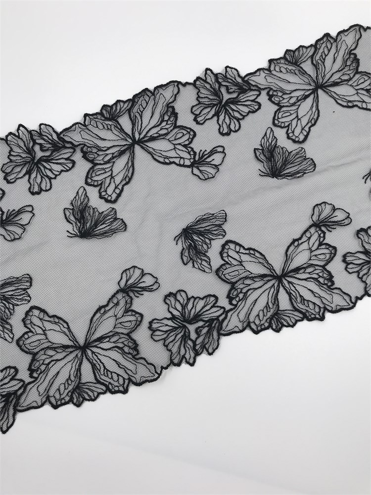 Вышивка на сетке, черная/бабочки, ширина 22 см, неэластичная.