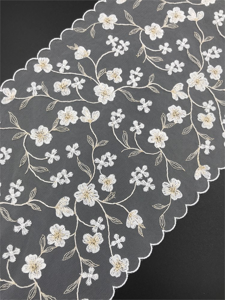 Вышивка на сетке молочный/белый, ширина 20 см, неэластичная, мягкая.